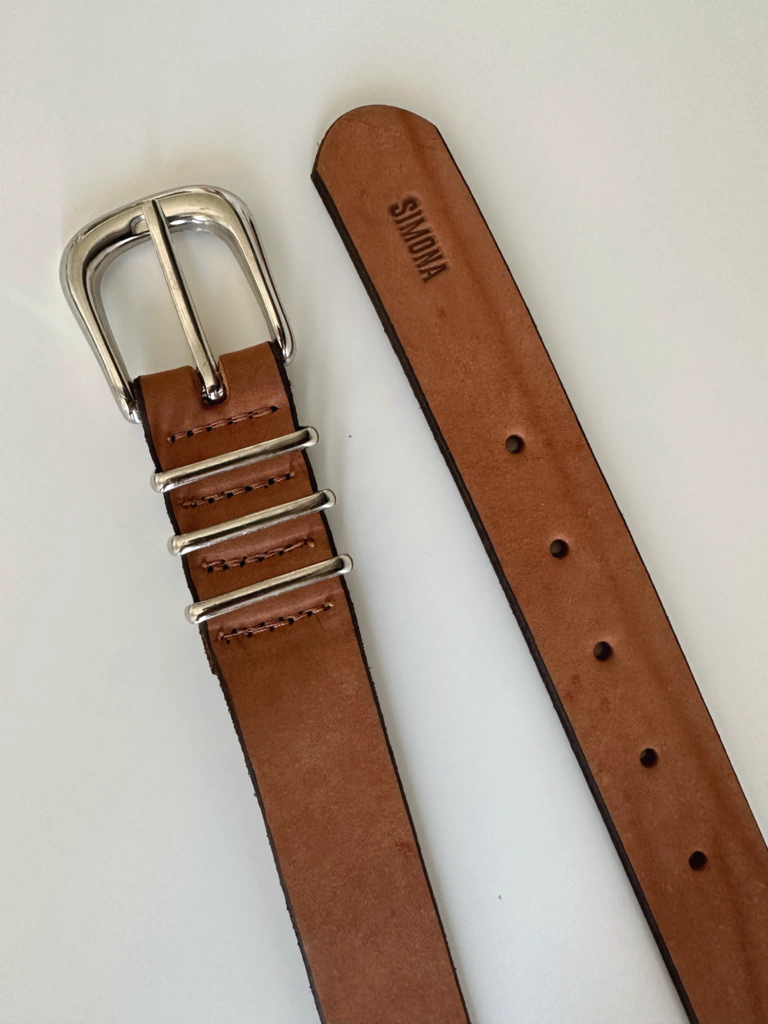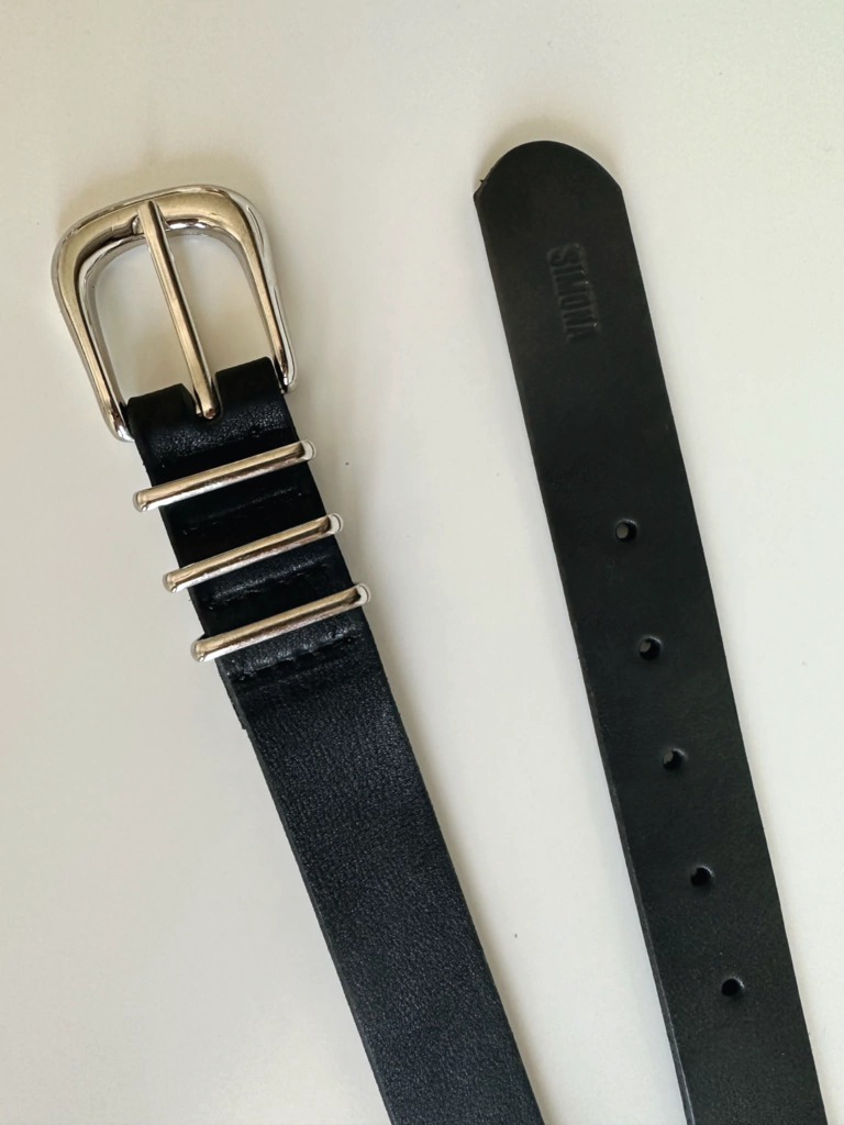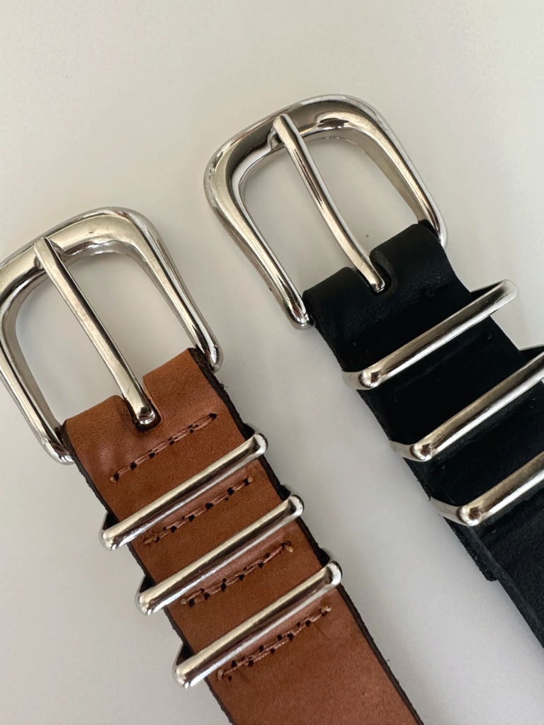 Cinturon confeccionado en cuero con tres pasadores y hebilla color niquel