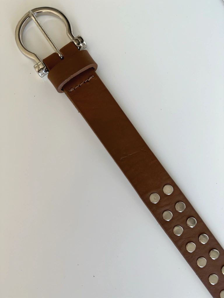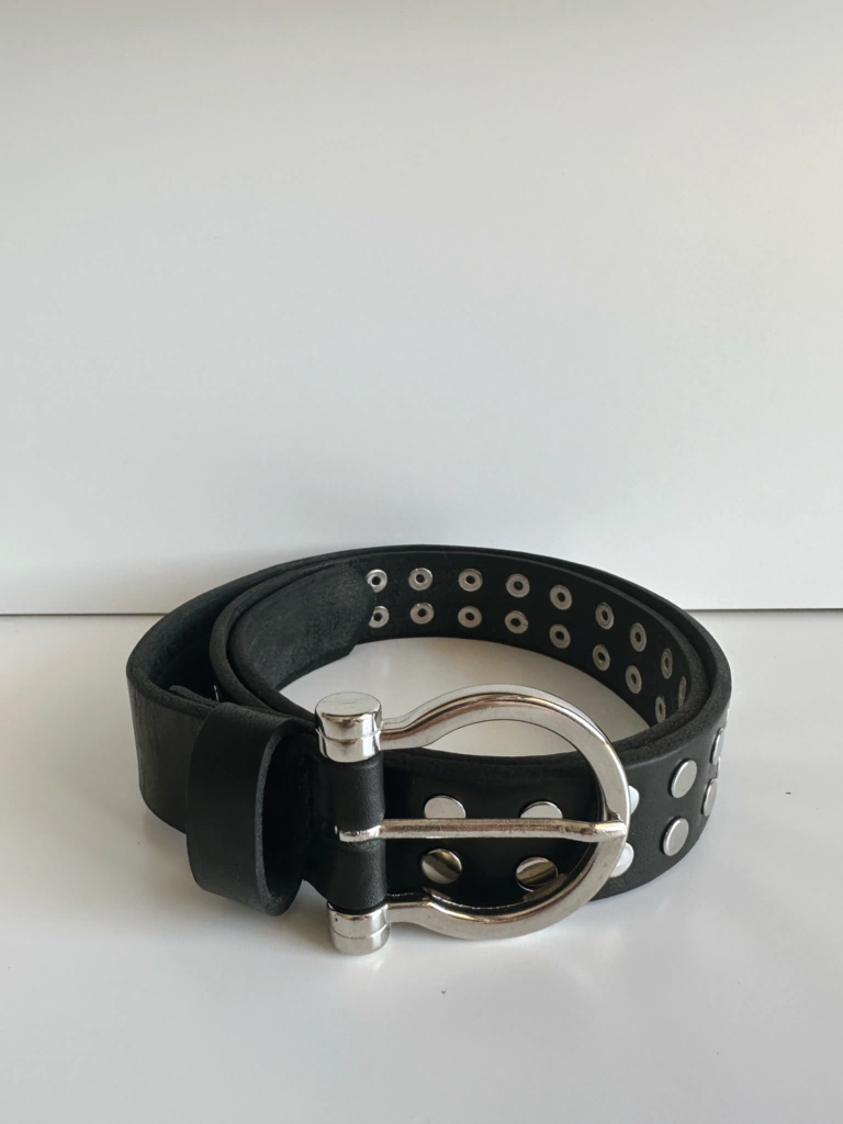 Cinturon confeccionado en cuero con hebilla y apliques color niquel